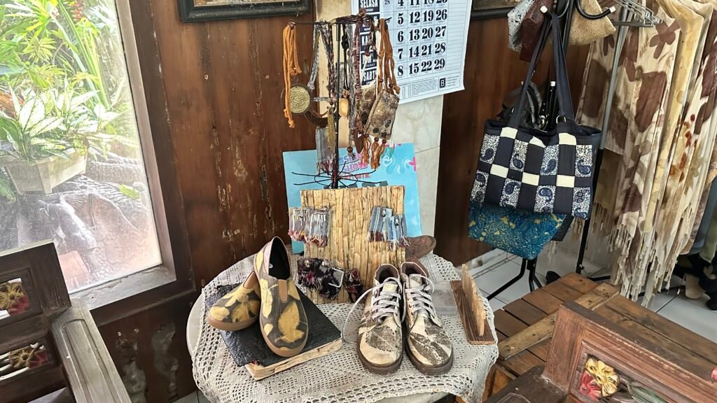 Di jalur Trilogic, aksesori dan produk ecoprint tidak berhenti pada motif. Cecilia menjadikan narasi sebagai identitas. “Saya lebih ke narasi,” ujarnya. Ia menempelkan cerita pada produk: daun apa yang dipakai, tema apa yang dibangun, bahkan detail visualnya.